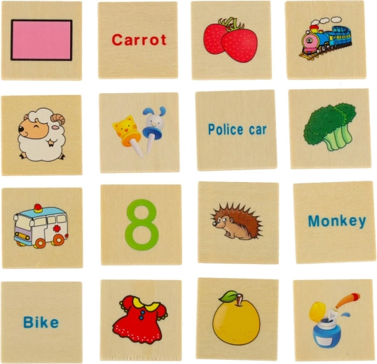 Grote themaborden en 80 kleine kaartjes met illustraties en Engelse benamingen leren kinderen categorieën herkennen, vergroten de woordenschat en ondersteunen het visuele geheugen.