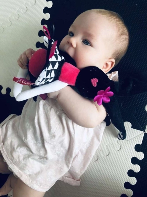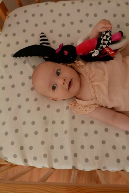 Zwart-witte strepen en opvallende kleuren trekken de aandacht van de baby en ondersteunen gezonde ontwikkeling van het visuele waarnemen vanaf de geboorte.
