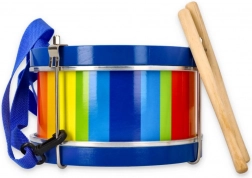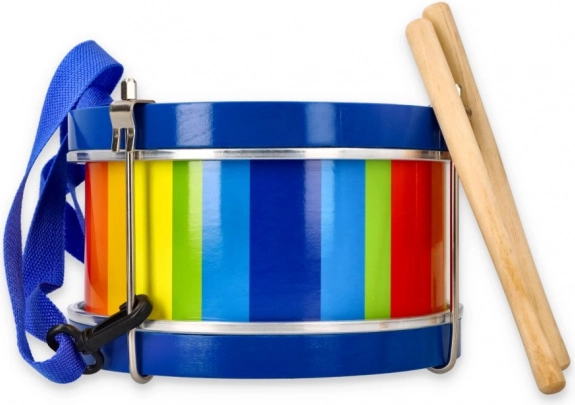 Kleurige trommel voor kleine muzikanten, die de ontwikkeling van ritmegevoel en motorische vaardigheden van kinderen stimuleert. Deze kwalitatieve trommel is uitgerust met twee houten stokjes en een verstelbare draagriem voor gemakkelijk meenemen.