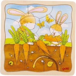 Ontdek hoe een wortel groeit met deze prachtige houten laagjespuzzel van GOKI. Vier opeenvolgende afbeeldingen met een verschillend aantal stukjes leren kinderen de basis van natuurkunde/biologie, en ontwikkelen fijne motoriek, logisch denken en coördinatie. Dankzij het stevige houten frame legt het prettig en is het ideaal voor kinderen vanaf 3 jaar.