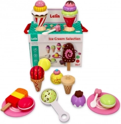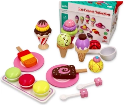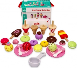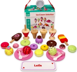 Met de elegante houten ijsset van het merk Lelin wordt elk kind een ijscoman. Deze set bevat 25 kleurrijke onderdelen en is ideaal voor kinderen vanaf 3 jaar. De speelgoedjes zijn gemaakt van gelakt hout en zijn verpakt in een stevige doos met handige klep en handvat voor eenvoudig vervoer.