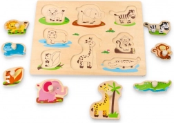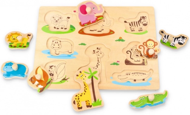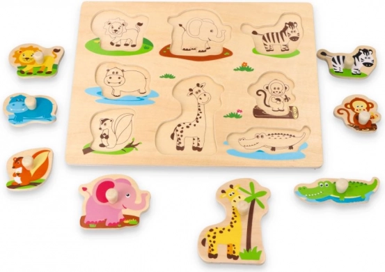 Houten puzzelbord Jungle is ideaal voor de ontwikkeling van motorische vaardigheden en het herkennen van vormen bij kinderen. De kleurrijke getekende dierenfiguren op het bord zorgen voor een leuke en leerzame ervaring.