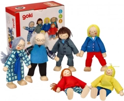 Ontdek de magie van familiespel met de klassieke Goki poppenset. Zes zorgvuldig vervaardigde figuren – oma, opa, mama, papa, dochter en zoon – stimuleren fantasie, communicatieve vaardigheden en sociaal leren. Dankzij de buigzame ledematen nemen ze eenvoudig verschillende poses aan en passen ze perfect in elk tafereel in het kinderpoppenhuis.