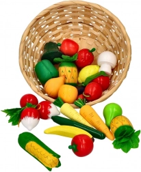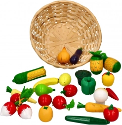 De mand met afmetingen 20 × 6,5 cm is handig om op te bergen en te vervoeren. Dankzij de 21 delen kunnen kinderen samen de rol van verkoper en klant delen, communicatie en sociale vaardigheden ontwikkelen en leren over verschillende soorten fruit en groenten.