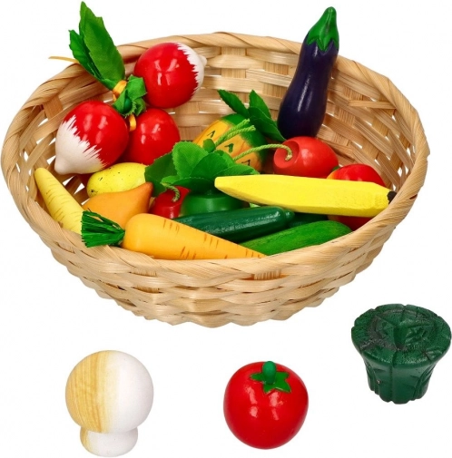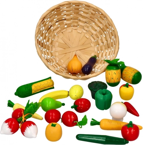 Deze kleurrijke set houten etenswaren in een mand is een geweldige aanvulling op de kinderkitchen en het winkelspel. Realistisch beschilderde stukken zoals wortel, maïs, tomaat en banaan nodigen kinderen uit om te ontdekken, te sorteren en te benoemen. Duurzaam hout zorgt voor een lange levensduur en veilig spelen.