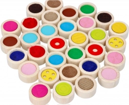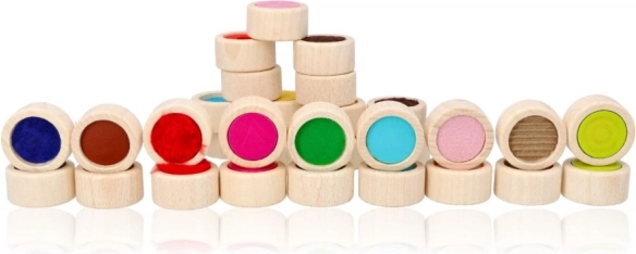 Het houten tastmemoryspel is ideaal voor het stimuleren van tast en zintuiglijke waarneming. De speelstenen in de vorm van cilinders van massief hout hebben een diameter van 4 cm en 16 verschillende oppervlakken. Het spel kan gespeeld worden met gesloten ogen als uitdaging om dezelfde oppervlakken te vinden of als klassiek memory door de stenen met de gekleurde zijde naar beneden te leggen.