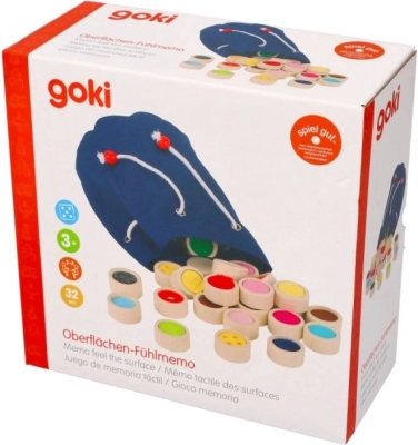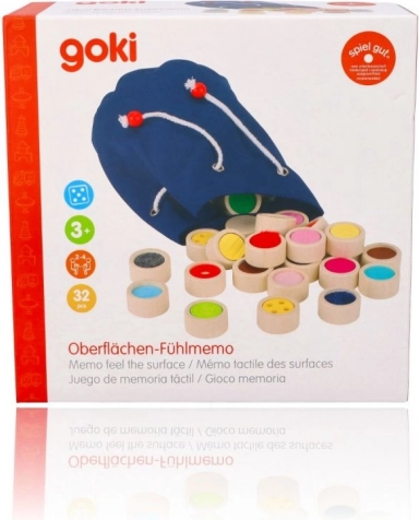 De verpakking bevat 32 speelstenen, elk paar heeft een ander oppervlak, en een handige katoenen zak voor eenvoudig opbergen. Door de kwalitatieve constructie is het spel ook geschikt voor visueel gehandicapten, en biedt naast plezier ook didactische waarde.