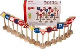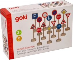 Ontdek de leuke en leerzame set Goki houten verkeersborden, die kinderen helpt spelenderwijs de verkeersregels onder de knie te krijgen. De stevige borden van massief hout met veilige, niet-giftige kleuren zijn ideaal voor spel met autootjes en op de racebaan. Ze liggen prettig in de hand, hebben een hoogte van 11 cm en in de verpakking vindt u 15 stuks voor realistische verkeerssituaties.