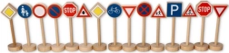 Spelen met de borden is een uitstekende voorbereiding op het verkeersplein en een perfecte aanvulling op alle houten en plastic wegen en racebanen. De veilige, heldere kleuren zijn niet schadelijk voor de gezondheid en geschikt voor kinderen vanaf 3 jaar.