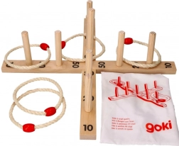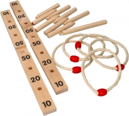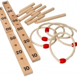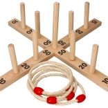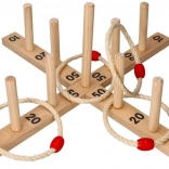 Dit spel bevat een kruisvormige basis met 9 houten pinnen en vijf touwringen met een houten element voor gemakkelijk werpen. Het spel is gemaakt van hoogwaardig hout, wat zorgt voor langdurig speelplezier.