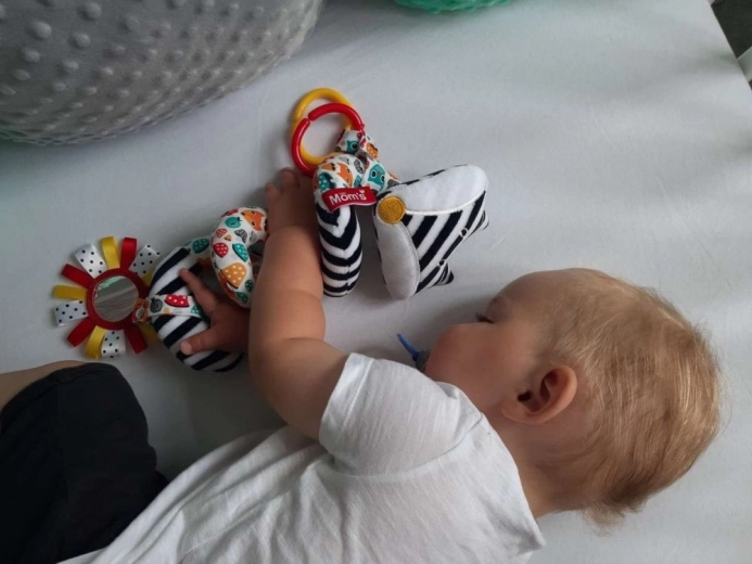 Zwart-wit patronen trekken de aandacht van pasgeborenen en ondersteunen de juiste ontwikkeling van de visuele perceptie vanaf 0+ maanden.