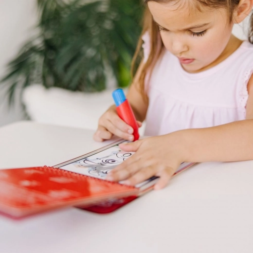 Met dit kleurboek kunnen kinderen met water schilderen zonder te knoeien. Zodra het water is opgedroogd, is het boekje klaar voor nieuwe plaatjes.