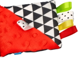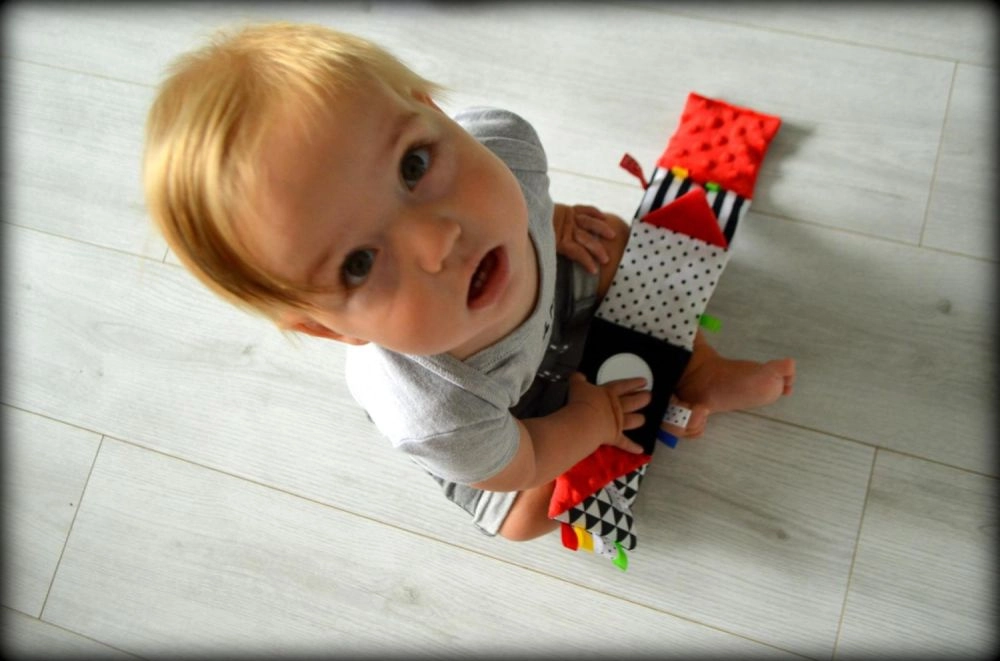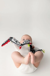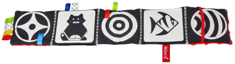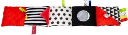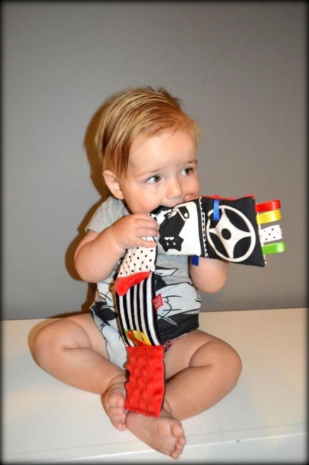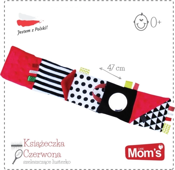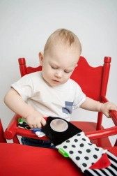 Het rode zintuiglijke boekje is ontworpen voor pasgeborenen en baby’s 0+. Het hoge contrast van zwart-witte graphics met rode accenten trekt op natuurlijke wijze de aandacht van het kind, terwijl de zachte vulling en diverse texturen uitnodigen tot aanraken. Dankzij het compacte formaat neem je het gemakkelijk mee in de kinderwagen of bevestig je het binnen het gezichtsveld van je baby.