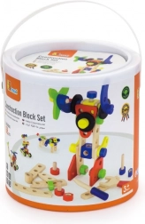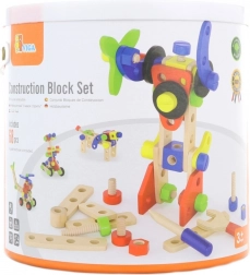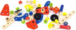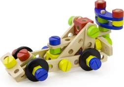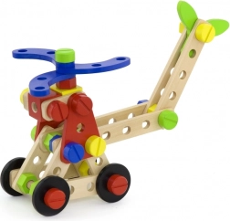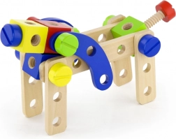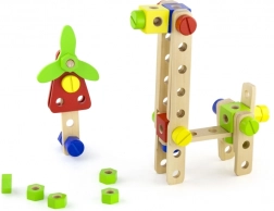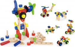 Deze veelzijdige houten bouwset biedt kinderen eindeloze bouwmogelijkheden – van voertuigen en dieren tot een helikopter of robot. Dankzij de stevige houten onderdelen, schroeven en verbindingsstukken oefenen kinderen hun oog-handcoördinatie en leren ze de basis van constructief denken.