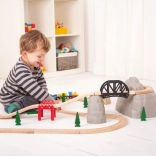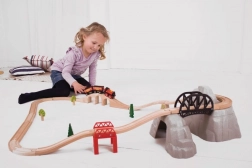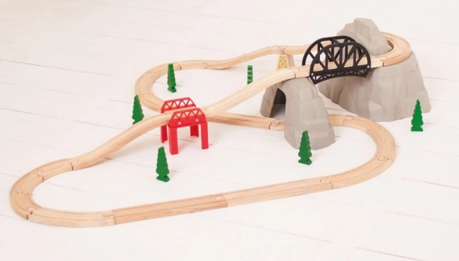 Ga op avontuur met deze houten treinset, die een prachtige bergroute biedt. De set bevat: