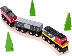 De houten treinset CN is compatibel met alle houten treinsets op de markt, wat het mogelijk maakt om eindeloos te bouwen en uit te breiden.