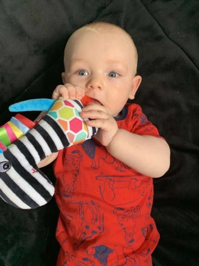 Bijtring in de vorm van een berenpoot voor baby’s – zwart-wit contrast