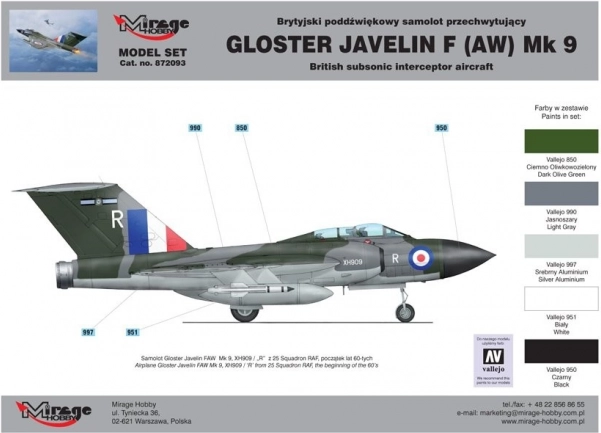 Ontdek het iconische Britse subsonische onderscheppingsvliegtuig Gloster Javelin F(AW) Mk.9 in de vorm van een hoogwaardige plastic bouwset. Nauwkeurige vormen en een gedetailleerde oppervlaktestructuur maken het mogelijk een aantrekkelijk model te bouwen dat zowel gevorderde beginners als ervaren modelbouwers zal bekoren. Dankzij de meegeleverde verven en gereedschappen kun je meteen beginnen met bouwen.