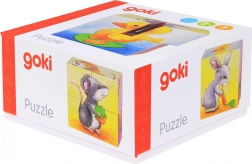 De traditionele prentblokjes van Goki bezorgen kinderen plezier in het leggen en ontdekken. Draai elk blokje in de juiste richting en maak een van de zes motieven met jonge dieren – kitten, beertje, puppy, konijntje, eendje of muisje. Er zijn ook voorbeeldafbeeldingen inbegrepen die kinderen helpen bij het leggen.