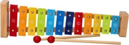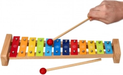Het stevige houten frame en de 12 metalen toetsen zorgen voor een aangenaam geluid en een lange levensduur van het speelgoed.