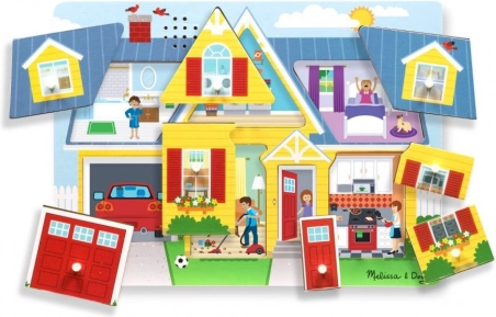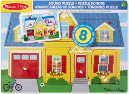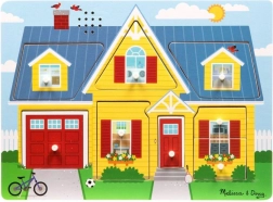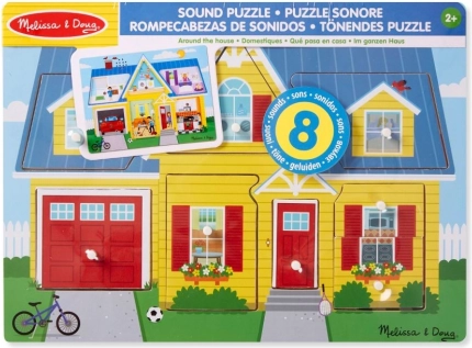 Deze houten geluidspuzzel toont een kleurrijk huis vol ontdekkingen. Bij correct plaatsen klinkt het bijpassende geluid, wat kinderen motiveert tot herhalen en helpt het principe van oorzaak en gevolg te begrijpen. Dankzij de overzichtelijke illustraties leren kinderen tegelijkertijd elementen van het huishouden herkennen.