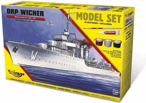 De gedetailleerde bouwset van het legendarische schip ORP WICHER in de versie wz.35 stelt je in staat een natuurgetrouwe Poolse torpedobootjager uit de Tweede Wereldoorlog te bouwen. In de doos vind je alles om te starten: kunststof model op schaal 1:400, drie acrylverven, lijm en een penseel – een ideale keuze voor liefhebbers van maritieme geschiedenis en modelbouwers vanaf 14 jaar.