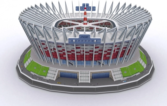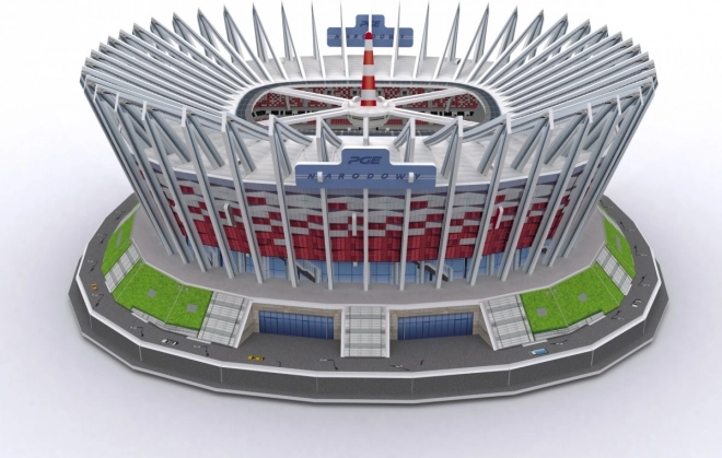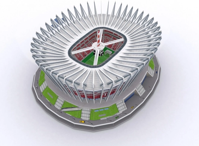 De realistische 3D-puzzelbouwset van het Nationaal Stadion in Warschau biedt uren plezier en een prachtig resultaat. De circa 3 mm dikke foamdelen met gelamineerd bedrukt papier sluiten precies aan en zijn eenvoudig te monteren. De montage volgt u aan de hand van de meegeleverde handleiding, zonder lijm of schaar – de voorgestanste onderdelen breekt u gewoon uit het vel.