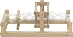 - Inhoud van de set: houten weefraam, 3 gekleurde garens, basis weefgereedschap