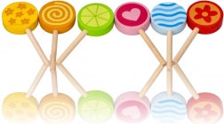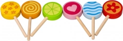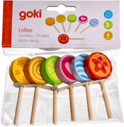 Ontdek het plezier van kleurrijke en houten speelgoed in de vorm van heerlijke lolly's van Goki. Deze set bevat zes verschillende ontwerpen, waaronder strepen, bloemen en hartjes. Elk van hen is ideaal voor kinderfantasie en spel in gelijke mate.