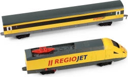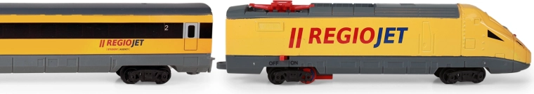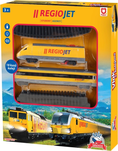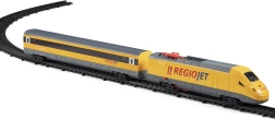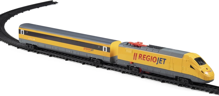 De RegioJet modeltrein van Student Agency is de ideale keuze voor alle liefhebbers van spoorwegen. Met deze originele set, bestaande uit een gele locomotief en een gele wagon, ga je op onvergetelijke avonturen. De set bevat 12 gebogen en 6 rechte rails, waarmee een spoorbaan tot wel 147 x 121 cm kan worden gemaakt. De rails zijn eenvoudig te leggen zodat er twee circuits kunnen worden gevormd voor realistisch gebruik.