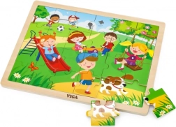 De houten puzzel van VIGA met een lentetafereel in het park biedt kinderen leuk leren door te spelen. Dankzij de stevige houten stukjes is hij gemakkelijk vast te pakken en te leggen, terwijl de oog-handcoördinatie en ruimtelijk inzicht worden gestimuleerd.