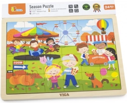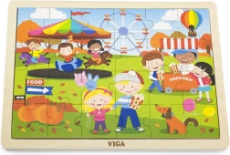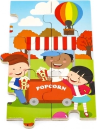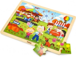 Ontdek een kwalitatieve houten puzzel voor kinderen met een vrolijke scène van een herfstkermis. Dankzij de 24 stevige stukjes en de lijst is hij ook voor jongere kinderen eenvoudig te leggen, waarbij ze spelenderwijs de oog-handcoördinatie en het herkennen van vormen en kleuren oefenen.