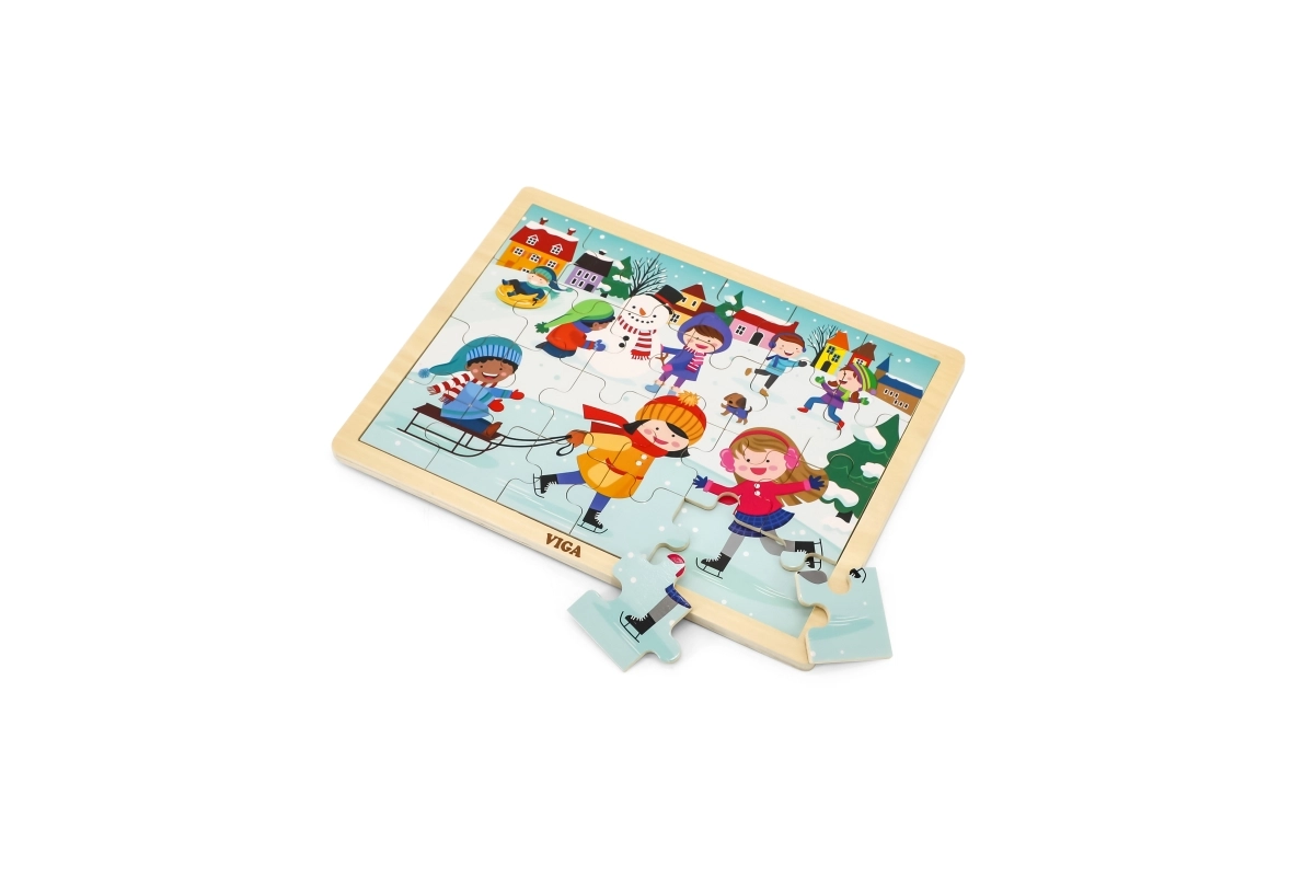 Deze houten puzzel met winterafbeelding is een uitstekende keuze voor kinderen vanaf 24 maanden. De grootte van de afzonderlijke stukjes is afgestemd op kinderhandjes en de stevige constructie zorgt voor een lange levensduur. Met 24 stukjes oefenen kinderen hun concentratie en ervaren ze plezier bij het voltooien van de afbeelding.