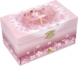 Het ontwerp in zachte roze tinten met ballerina’s en bloemen oogt romantisch en tijdloos. De juwelendoos is een decoratief object, geen speelgoed, en is ideaal als origineel cadeau voor jonge dames en balletliefhebbers.