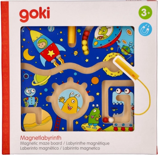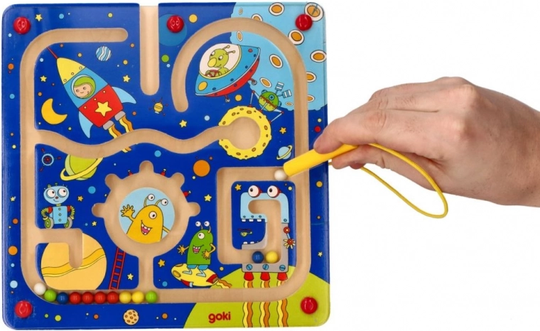 Ontwikkel de vaardigheden van uw kinderen met dit kleurrijke magnetische spel Ruimte. Het spel bevat een magnetische staaf aan een koord, waarmee uw kinderen de balletjes door het labyrint kunnen bewegen.