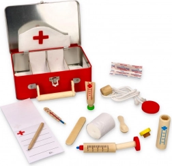 Stimuleer de fantasie en sociale vaardigheden van kinderen met een kwalitatief dokterskoffertje dat houten en kindveilige instrumenten bevat. De metalen uitvoering zorgt voor duurzaamheid en een lange levensduur, terwijl de compacte afmetingen perfect zijn voor op reis en in de kinderkamer.
