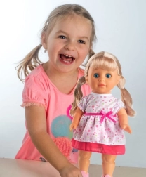 • Na het indrukken van de knop op haar buik loopt de pop en zingt: 'Ahoj, já jsem Barunka. Zazpíváme si spolu?'