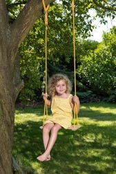 De schommel is voorzien van metalen ringen aan de ophangkoorden, die eenvoudige en veilige bevestiging mogelijk maken.