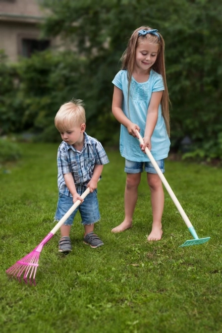 De totale lengte van ca. 80 cm is ideaal voor kinderen vanaf 3 jaar. De kleur van de hark kan verschillen – voorbeeldfoto's zijn ter illustratie; de actuele kleuruitvoering is afhankelijk van de voorraad.