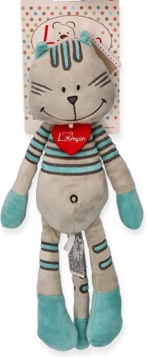 Pluche kater Lewis is de ideale knuffelvriend voor zowel knuffelen als slapen. Zijn zachte en pluizige afwerking zorgt voor comfort, terwijl de turquoise strepen en het vilten hartje een originele look geven waar kinderen dol op zijn.