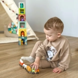 Hoogwaardige houten afwerking met niet-giftige verven in levendige tinten, bestand tegen dagelijks spelen thuis en op de kleuterschool.