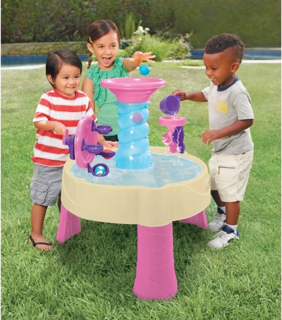 LITTLE TIKES Spiralin' Seas is een vrolijk waterpark dat kinderen uitnodigt om met water te experimenteren. Dankzij het roze-beige design, de spiraaltoren en het waterrad observeren kinderen stroming, draaien en spetteren, terwijl ze hun fijne motoriek, oog-handcoördinatie en sociale vaardigheden ontwikkelen tijdens het samenspelen.