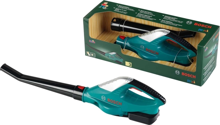 Realistische kinderbladblazer onder BOSCH-licentie van het merk Klein, ideaal voor kleine helpers vanaf 3 jaar. Heeft een ergonomische handgreep aangepast aan kinderhanden, een afneembare buis en blaast echt lucht wanneer je op de knop drukt. Een geweldige speelset om volwassenen na te bootsen en veilig in de tuin te “werken”.