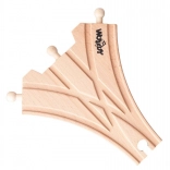 De X‑spoorwegovergang is een ideaal onderdeel voor alle kleine bouwers van treinbanen. Hij maakt het kruisen van sporen mogelijk en voegt meer mogelijkheden toe om treinen te laten rijden en ritten te plannen. Dankzij het eenvoudige koppelingssysteem sluit je hem gemakkelijk aan op andere onderdelen van de houten rails.