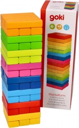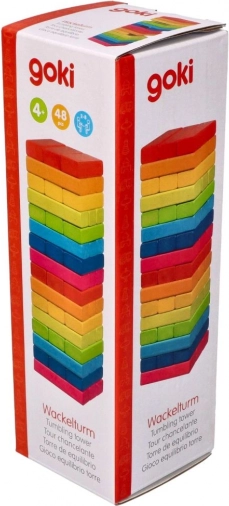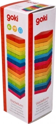 De balans-toren van het merk GOKI brengt het klassieke, spannende spel in een modern regenboogjasje. Elke verdieping bestaat uit drie gekleurde houten plankjes die je tot een stabiele toren stapelt en vervolgens één voor één voorzichtig naar de top verplaatst. Het doel is de balans zo lang mogelijk te behouden.