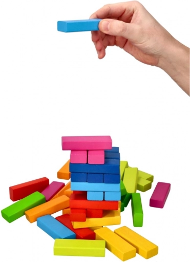 Leuk behendigheidsspel voor het hele gezin: bouw een toren van kleurrijke houten blokken en verwijder daarna voorzichtig de stukjes zonder dat hij omvalt. Stimuleert fijne motoriek, geduld en concentratie. Kwalitatieve houten uitvoering, eenvoudige regels en veel spanning bij elke zet.