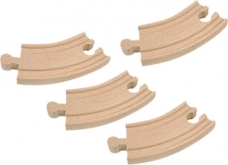 Breid je houten treinbaan uit met vier korte bochten voor vloeiende curves en nieuwe trajecten. De delen zijn 10 cm lang en ideaal voor kinderen vanaf 3 jaar. Compatibel met gangbare houten treinbanen, eenvoudig te koppelen en stimuleren de ontwikkeling van fijne motoriek en creativiteit.