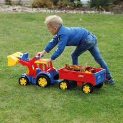De gigantische kindertractor met aanhanger van Wader zal kleine bouwers verrassen: hij is 117 cm lang, heeft een bewegende voorlader, een openende achterklep van de aanhanger en een uitzonderlijk draagvermogen tot 100/60 kg. Gemaakt van veilig, duurzaam plastic geschikt voor spelen binnen en buiten en stimuleert motoriek en verbeelding.