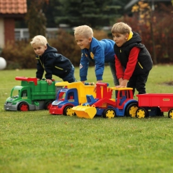 De gigantische tractor met lader en aanhanger zorgt voor veel realistisch speelplezier bij bouwen, laden en vervoeren. De robuuste constructie van 117 cm lang kan intensief kinderspel aan, terwijl de functionele laadbak en de aanhanger met openende achterklep van elke actie in de zandbak een echt avontuur maken.