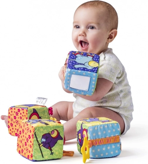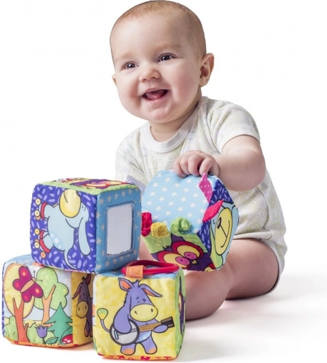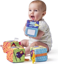 Heerlijk zachte textiele blokken van NINY brengen plezier en stimuleren de zintuigen vanaf de geboorte. Ze bevatten rammelaars, piepers, bijtringen, een veiligheidsspiegel van folie en elementen van knisperpapier, die de fijne motoriek en de zintuiglijke waarneming van kinderen ondersteunen.